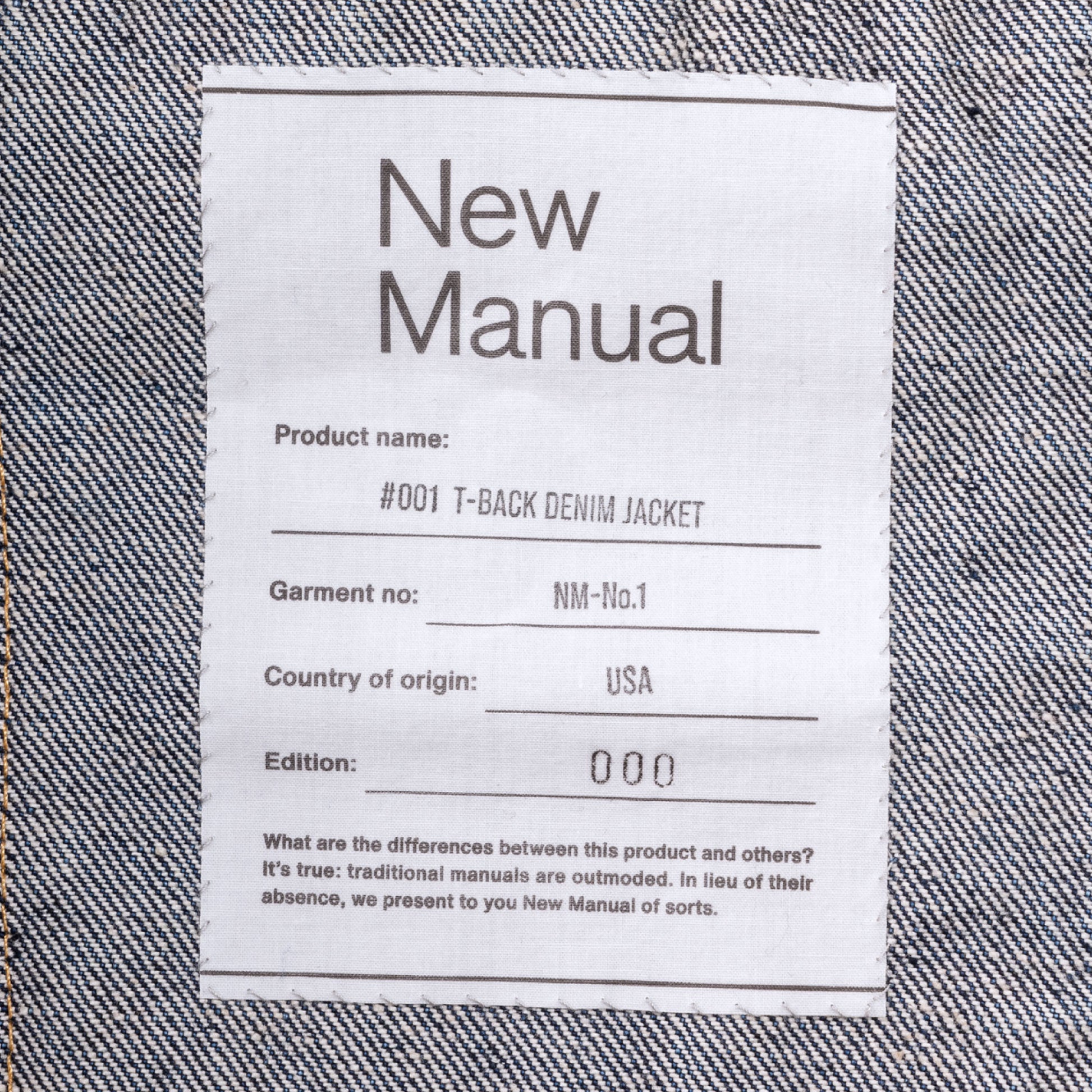 Based on a denim jacket made in 1941-1942. The silhouette features a drop shoulder, wide sleeves, and no tightening at the waist. It has rare T-back detailing.* The details and sewing such as the handling and direction of the needle are based on those used at that time, with the addition of modern strengthening. Also, minor adjustments to make it more modern are applied to the silhouette, such as the length and arm holes. This is New Manual #001.