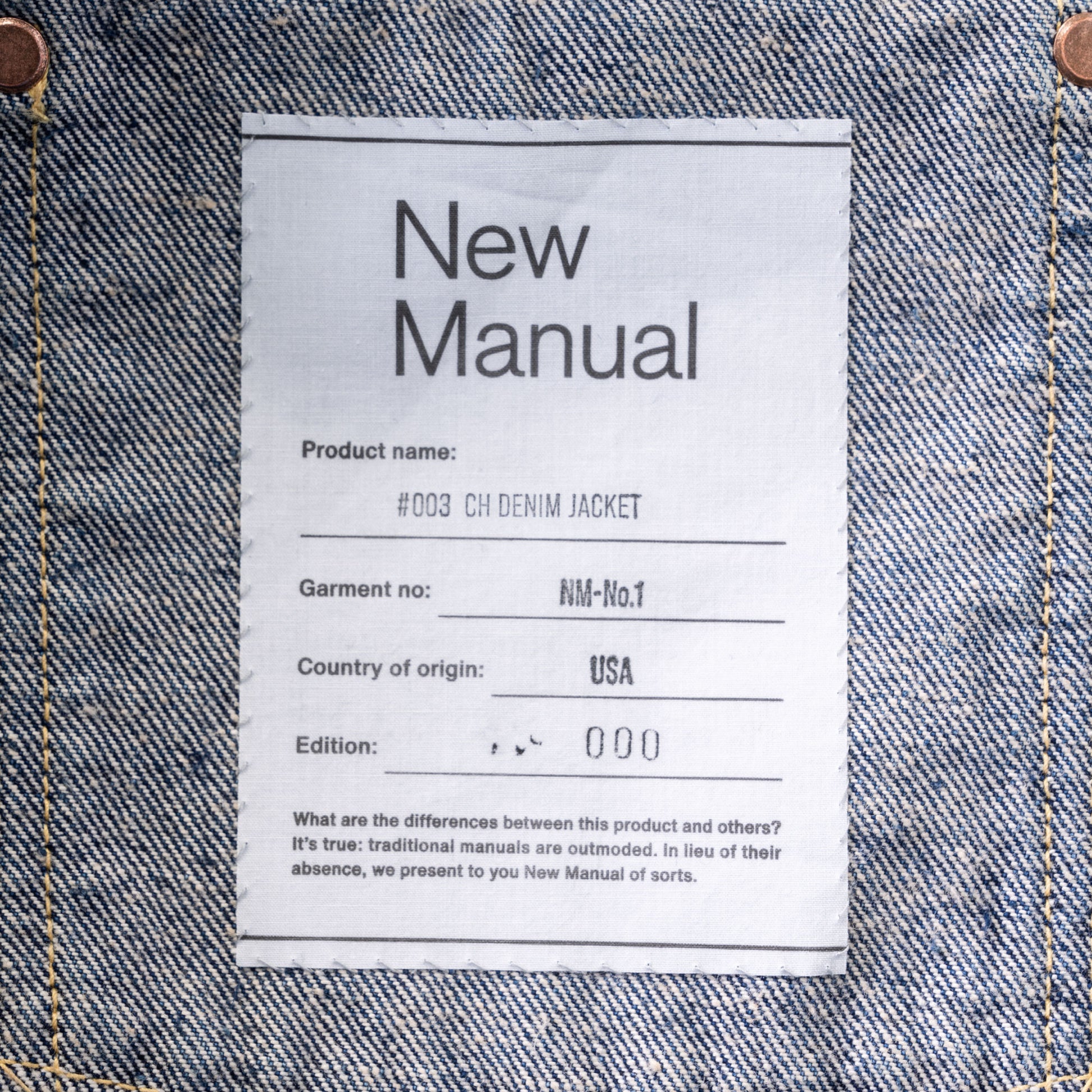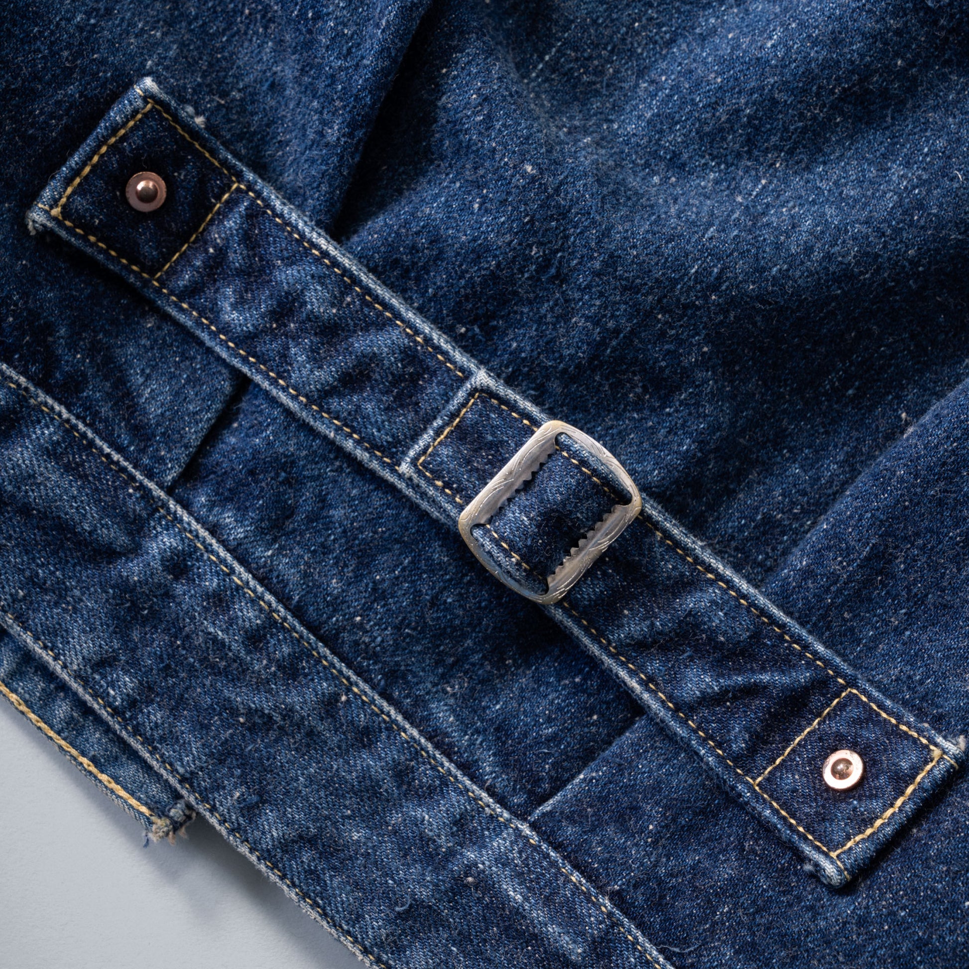 Based on a rare denim jacket made in the 1940s. The silhouette features a drop shoulder, wide sleeves, and no tightening at the waist. The strength of the fabric has been enhanced while retaining the original's coarse stitching and simple construction. This rare oversized version has been faithfully reproduced using the same fabric and trims as the original. This is New Manual #003.