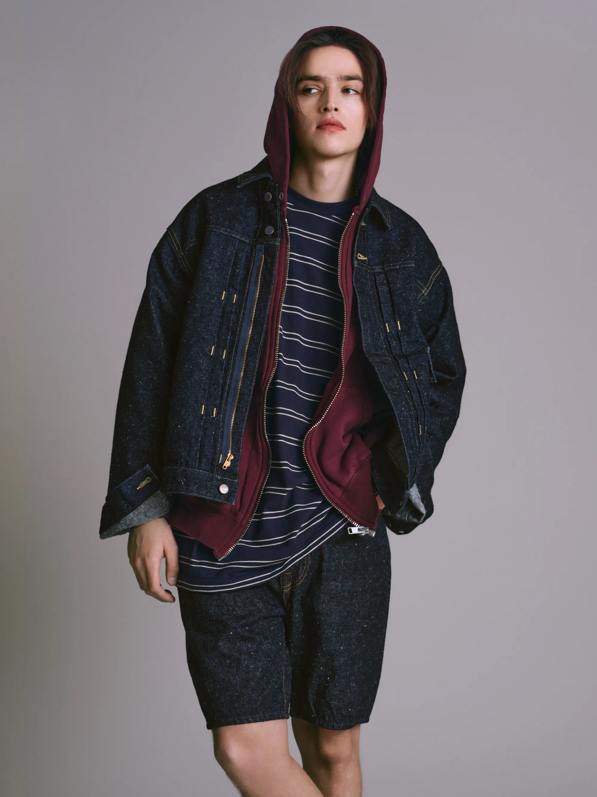 Based on denim shorts released in 1961. This is a relatively recent item out of our 33 selected pieces, but it is very rare. Because it is a model designed as a pair of shorts, it features a round silhouette and hip line completely different from the pattern of cut-off shorts. However, the crotch line is adjusted to a modern styling. While following the stable stitching techniques of the era, the finish has been upgraded to higher specifications. This is New Manual #004.