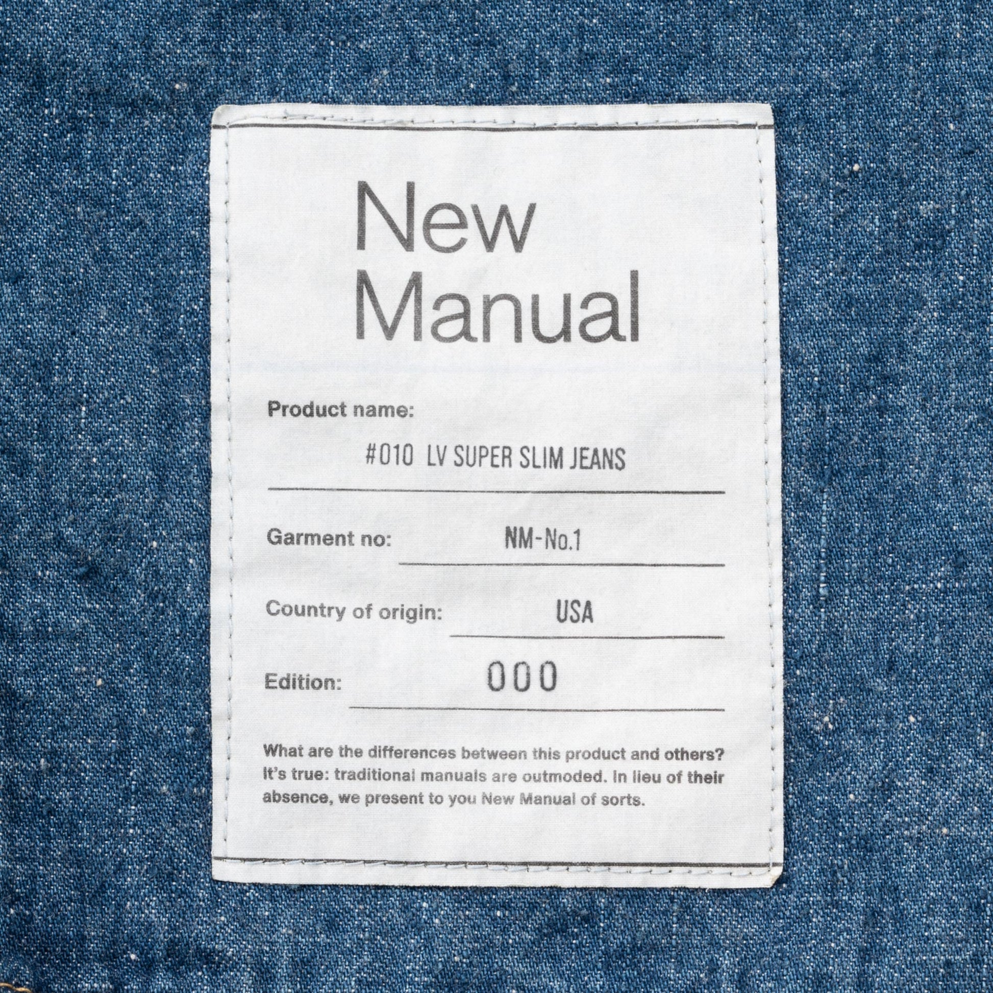 Based on the predecessor of the model known as the hallmark of super‑slim jeans, which was produced only for a brief period between 1961 and 1966. The pattern was faithfully reproduced from dead stock, with only the seat adjusted to eliminate pinching for easier modern wear. For this release, a black version, which did not exist in the 1960s, has also been introduced, making it available in two colors. The finish is of the highest quality, free of distortion and reinforced with modern durability. This is New Manual #010.