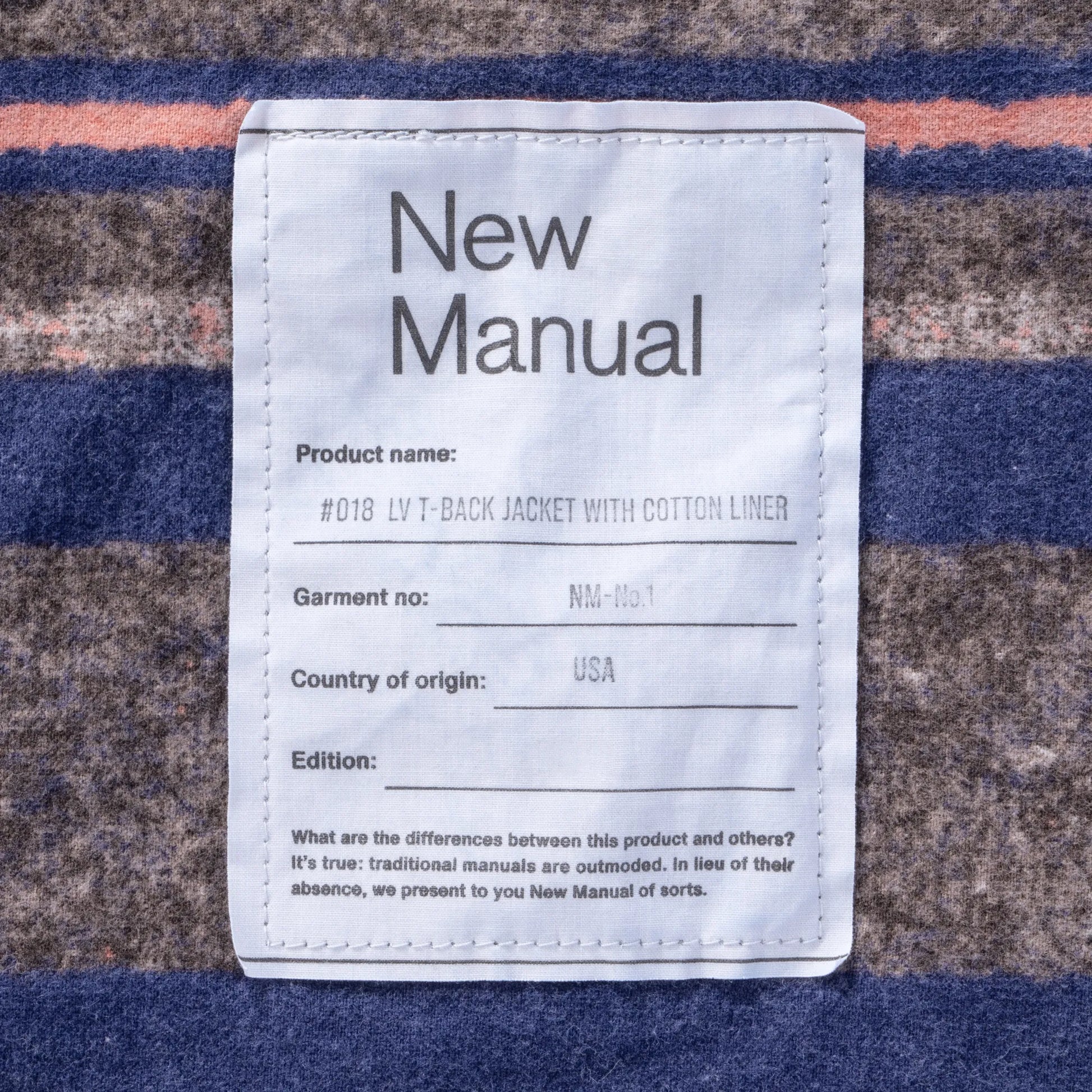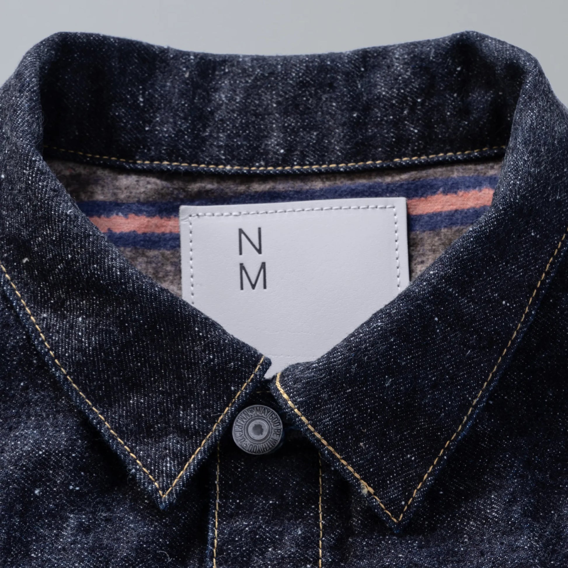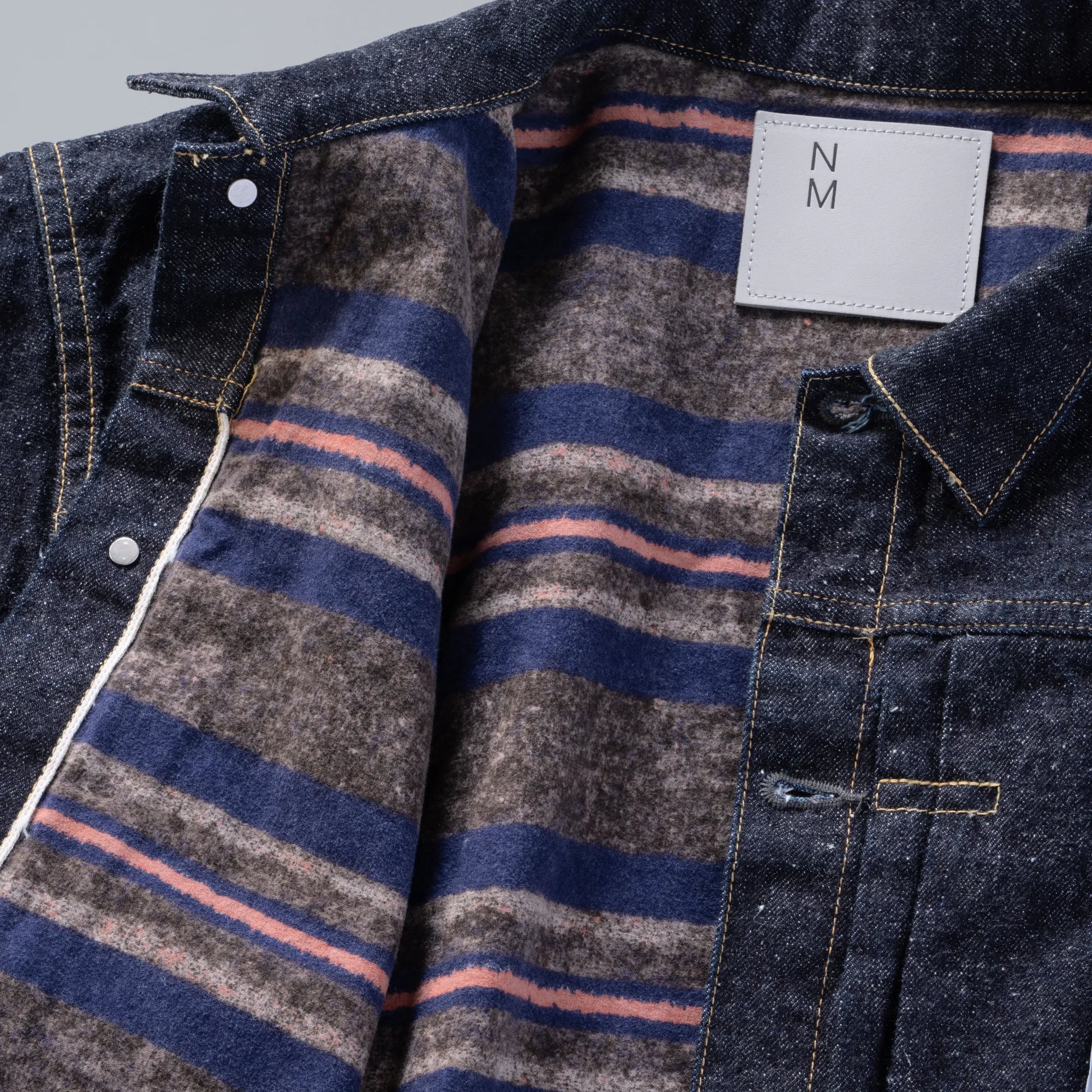 Based on a denim jacket produced for only about three years in the 1950s, this rare model originally featured a wool‑blanket lining. To improve thickness, feel, and shrinkage, the original striped pattern has been faithfully reproduced using cotton flannel for the lining. This version is based on the largest size produced at the time, size 50, and features T‑back detailing* with subtle adjustments to the body length for a more wearable silhouette. Made using NM's original denim, it is a piece designed especially for winter wear. This is New Manual #018.