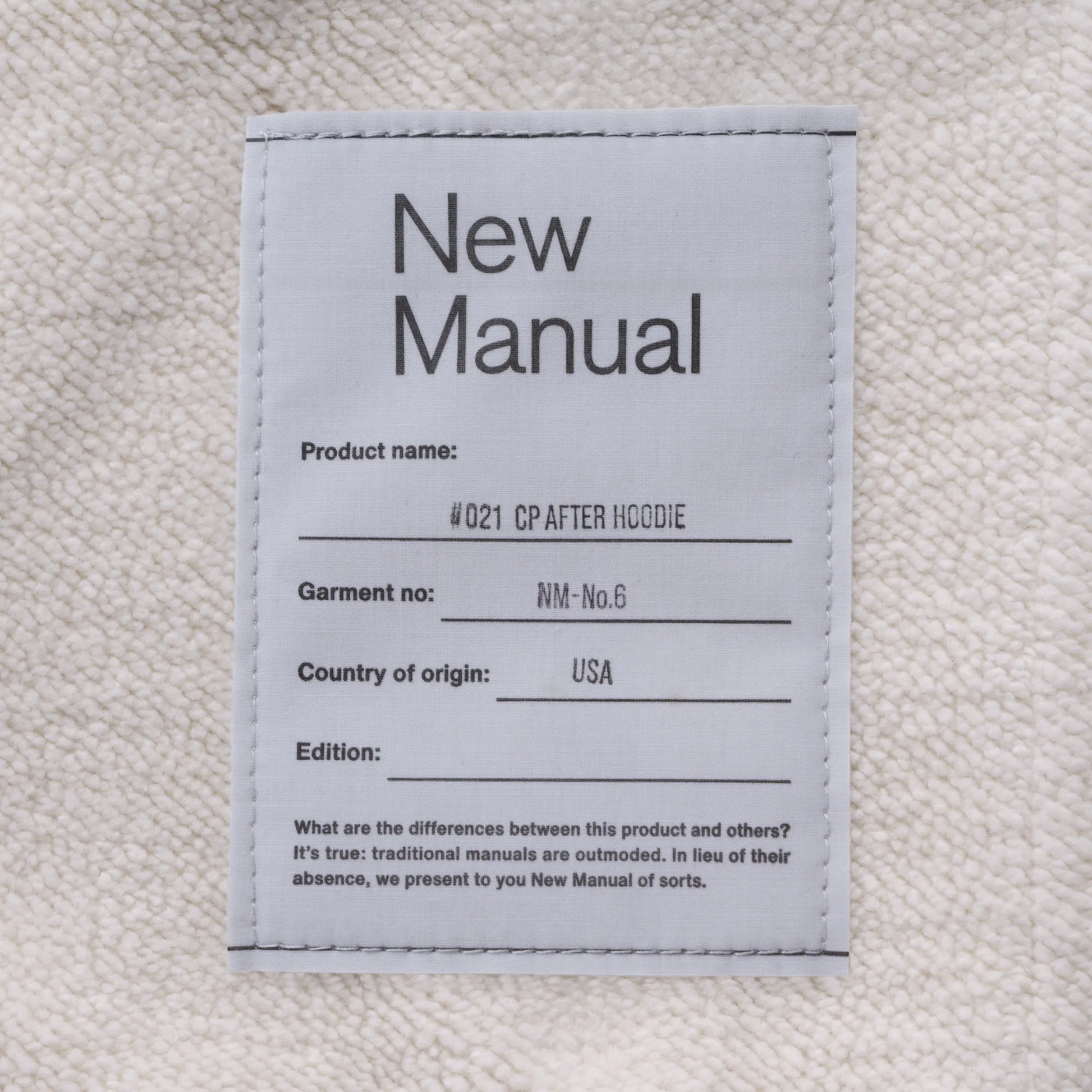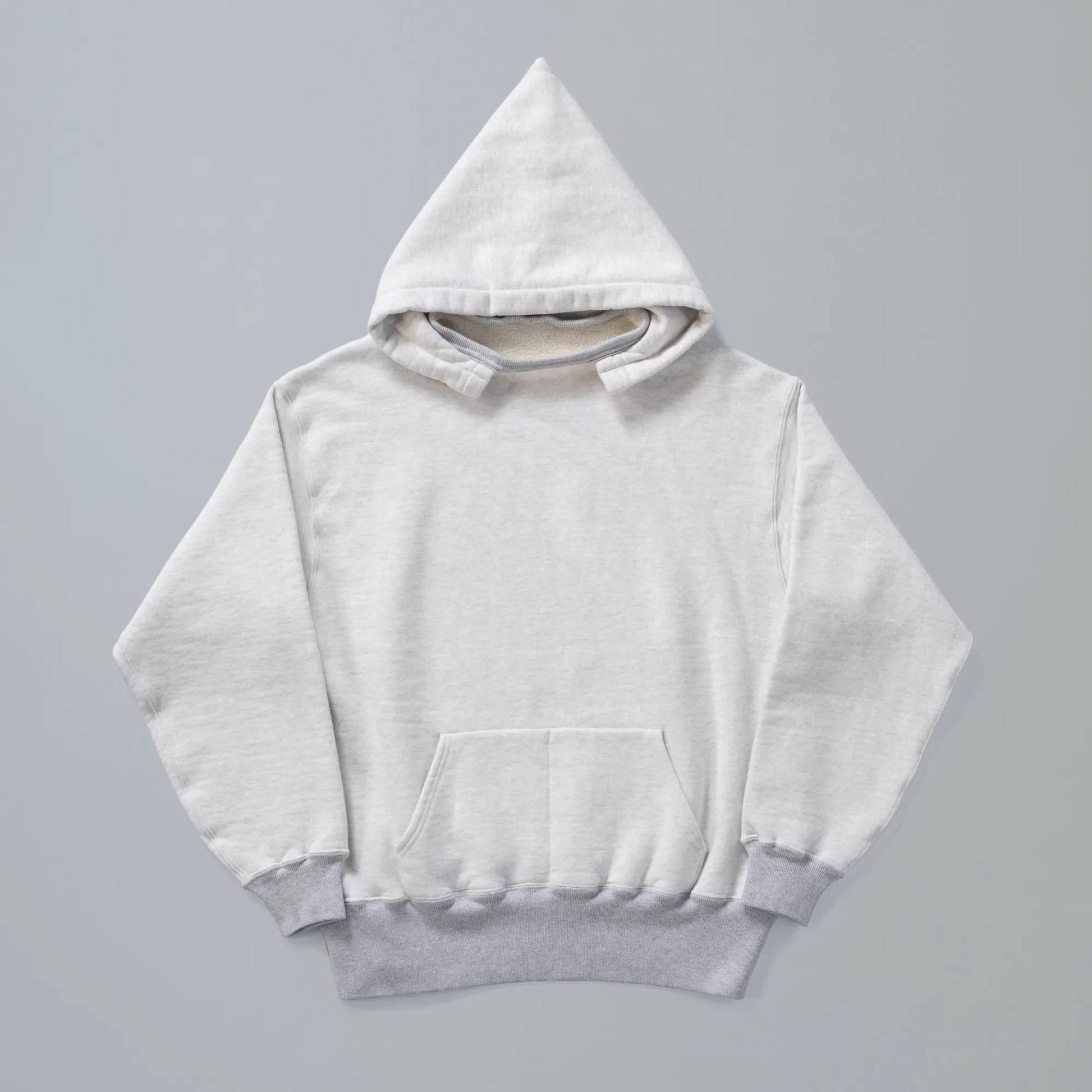 Based on a rare oversized version of the post‑attached hoodie, this piece originally featured a double‑face construction on both body and hood. For easier wear, only the hood retains the double‑face specification, while the body has been updated. To counter the heavy vertical shrinkage of vintage pieces, the body length has been slightly extended.