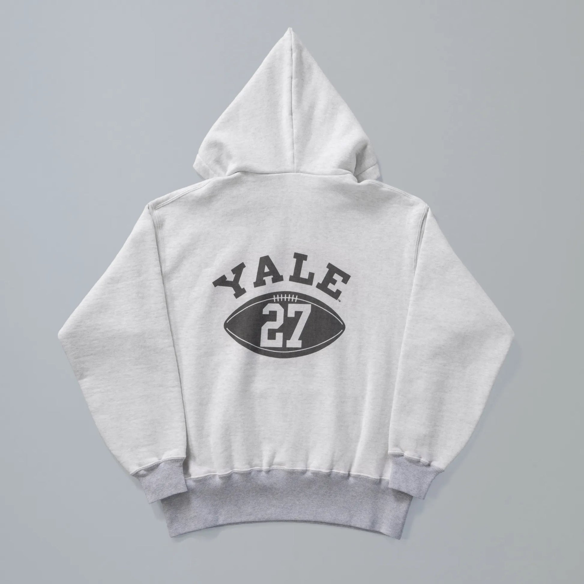 This release marks a collaboration with YALE, featuring a sumi‑black discharge print of “YALE” and a football graphic across the back. The two‑tone color scheme of the original has been faithfully reproduced. The fabric itself is fully custom, recreated from the cotton stage to replicate the pale gray heather knits seen around 1950, based on a white base yarn. This is New Manual #021.