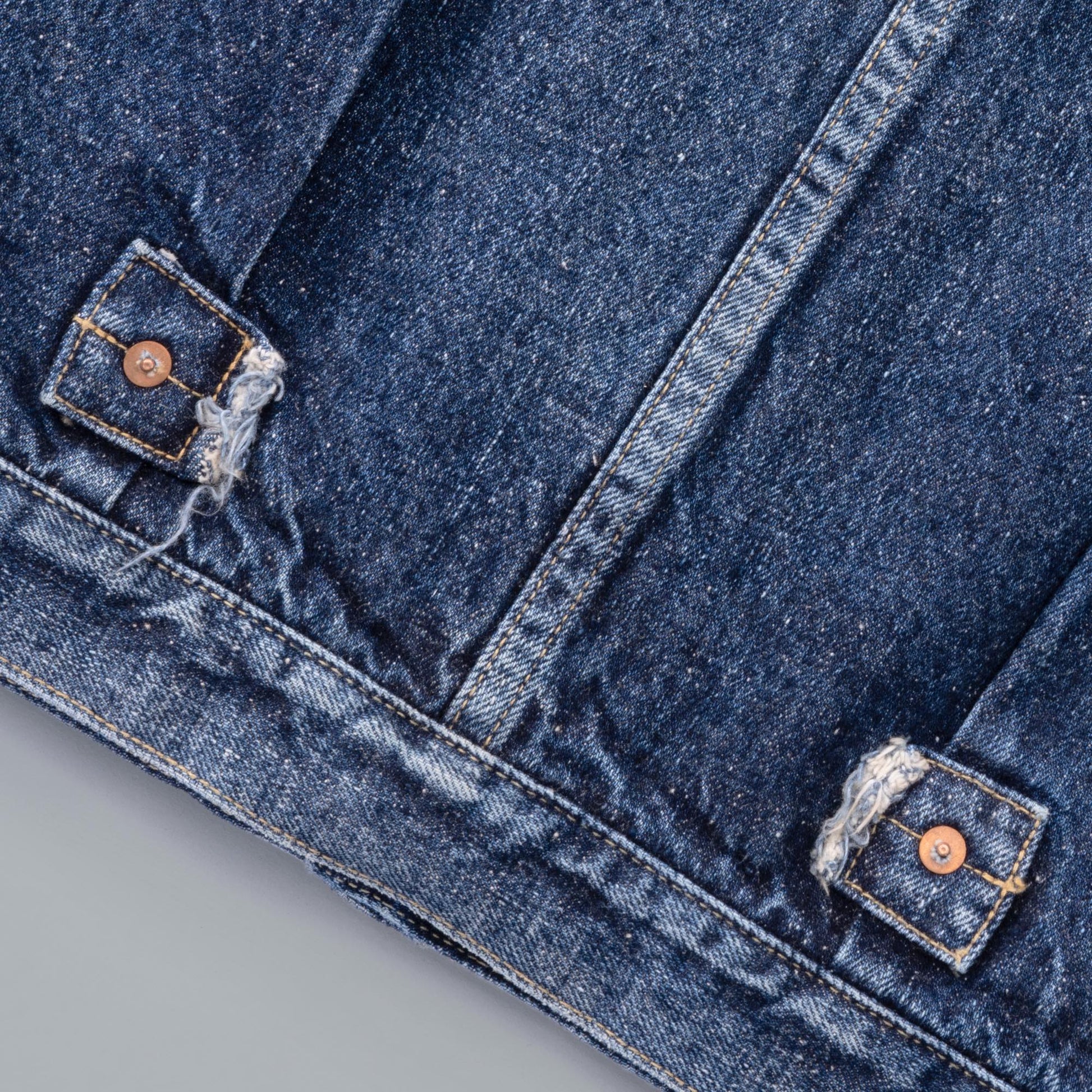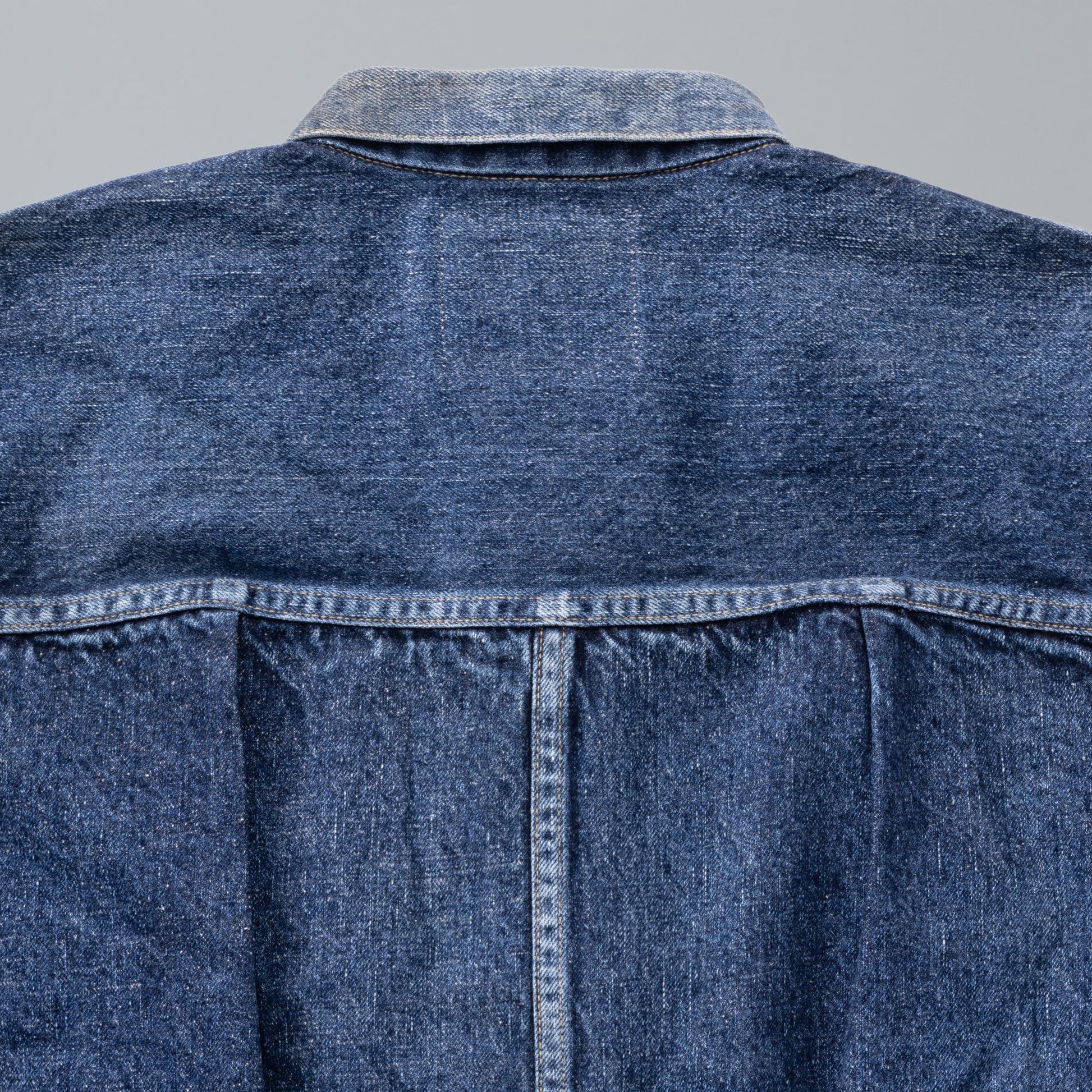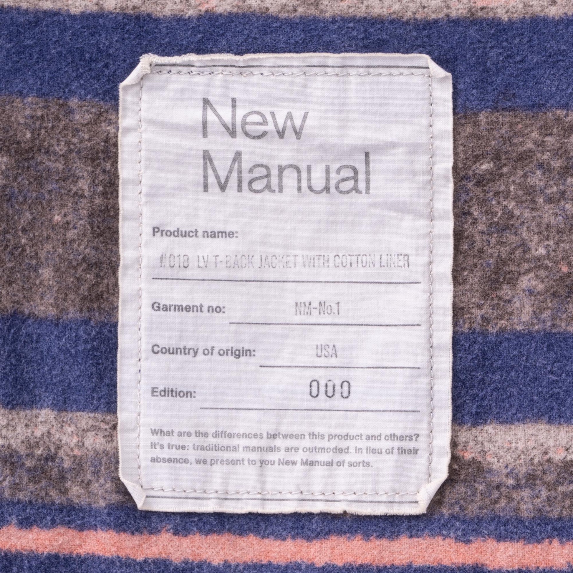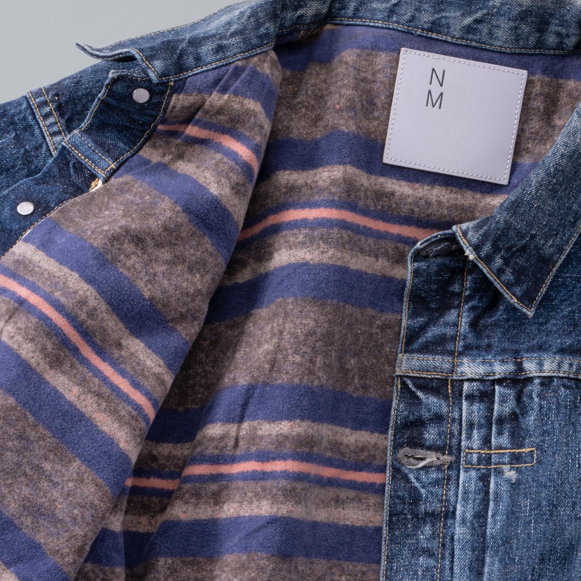 Based on a denim jacket produced for only about three years in the 1950s, this rare model originally featured a wool‑blanket lining. To improve thickness, feel, and shrinkage, the original striped pattern has been faithfully reproduced using cotton flannel for the lining. The cinch back, which was often removed from originals, has also been reinstated. This version is based on the largest size produced at the time, size 50, and features T‑back detailing* with subtle adjustments to the body length for a more wearable silhouette. Made using NM's original denim, it is a piece designed especially for winter wear. This is New Manual #018.