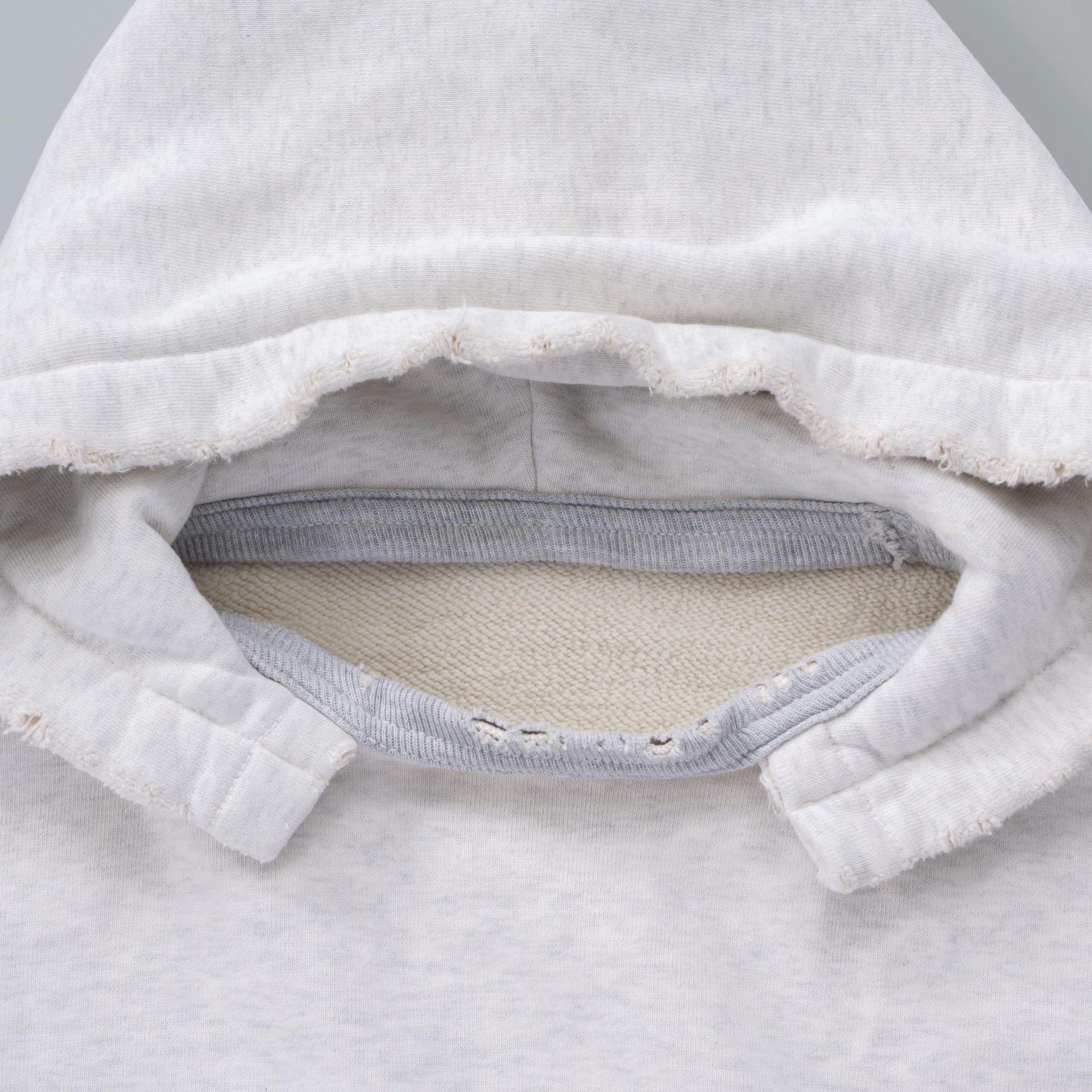 Based on a rare oversized version of the post‑attached hoodie, this piece originally featured a double‑face construction on both body and hood. For easier wear, only the hood retains the double‑face specification, while the body has been updated. To counter the heavy vertical shrinkage of vintage pieces, the body length has been slightly extended.