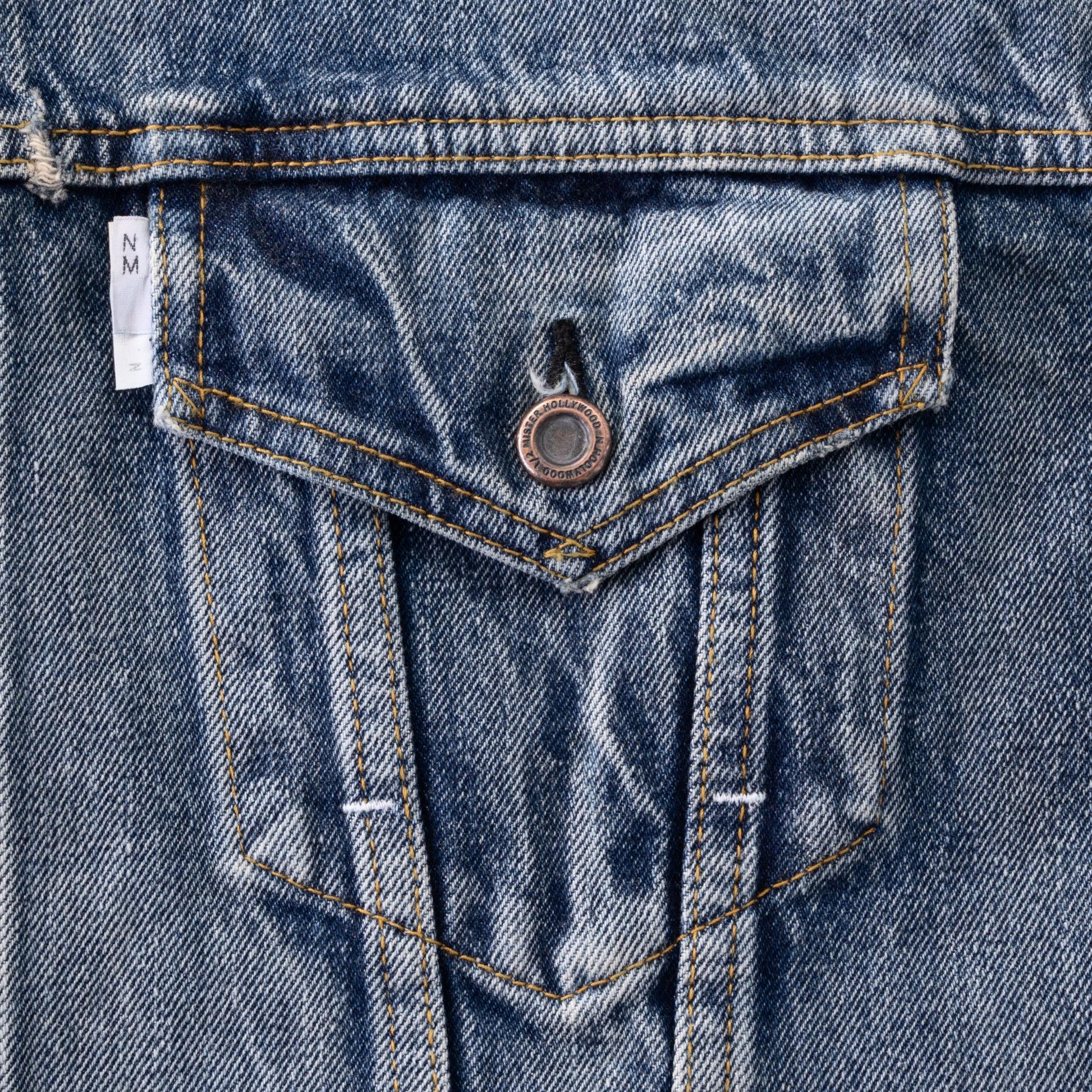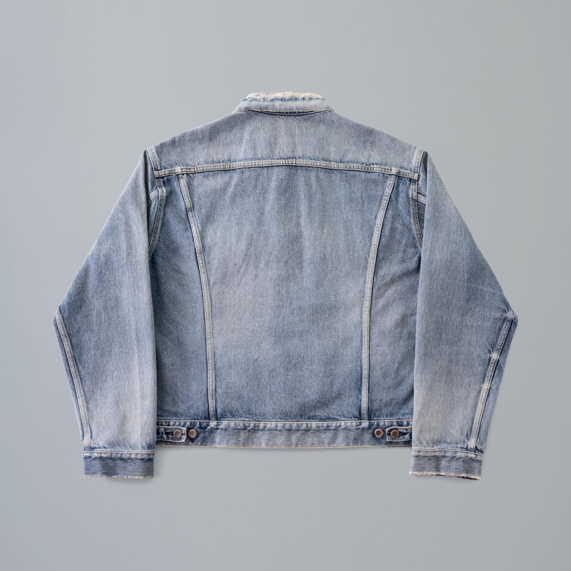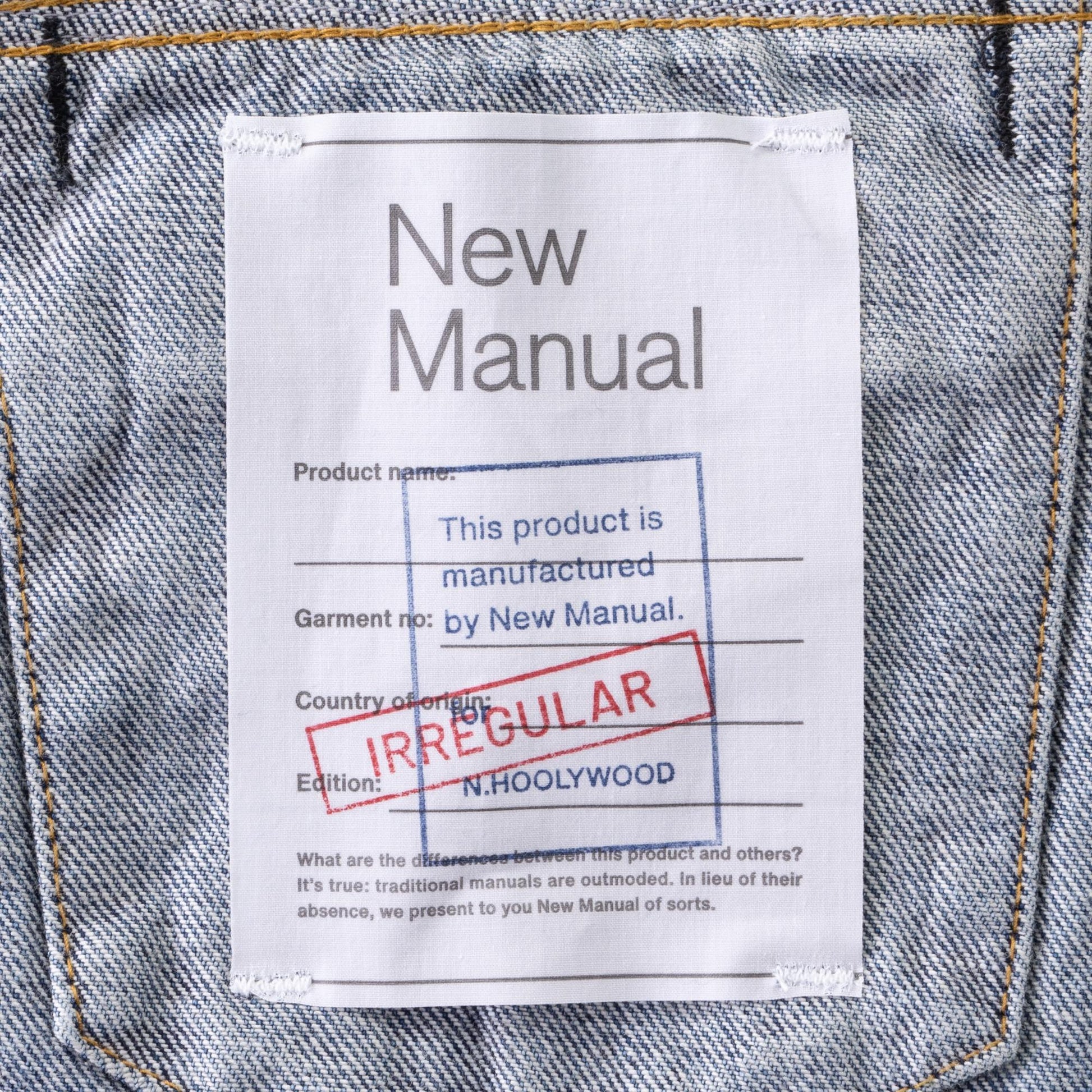 New Manual has now realized a collaboration with N.HOOLYWOOD designer Daisuke Obana. This N.HOOLYWOOD original is based on a denim outfit that Mr. Obana himself loved, and was constructed by combining countless patterns that caught his eye, from modern to vintage silhouettes. The sleeves are a little longer, adjusting the balance of the silhouette overall. To really recreate that vintage look, the material is 11.8 oz denim, a slightly thinner type that is a departure from the denim that New Manual normally uses. New Manual has also sought to recreate every little detail, including the aged and faded coloring, worn areas, aftermath of repairs, and running stitching. New Manual has now taken this product and reworked every single point from our own unique perspective. Aiming for a condition evocative of a longtime wearer having repaired the garment themselves, the collar in particular looks like roughshod 1970s home repairs have been performed on excessive crush damage in the area. We have forged nothing less than the physical epitome of the desire to continue to keep wearing one special piece of clothing—and that has now become a New Manual IRREGULAR.