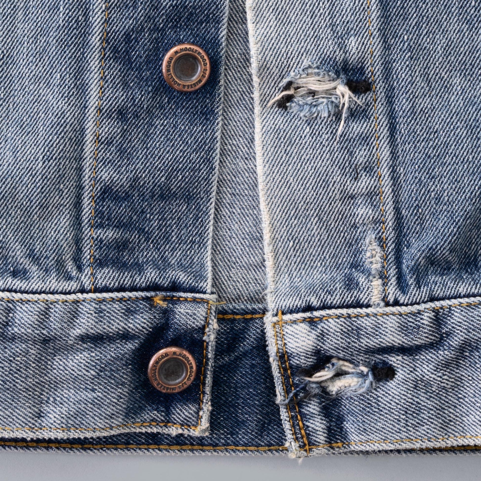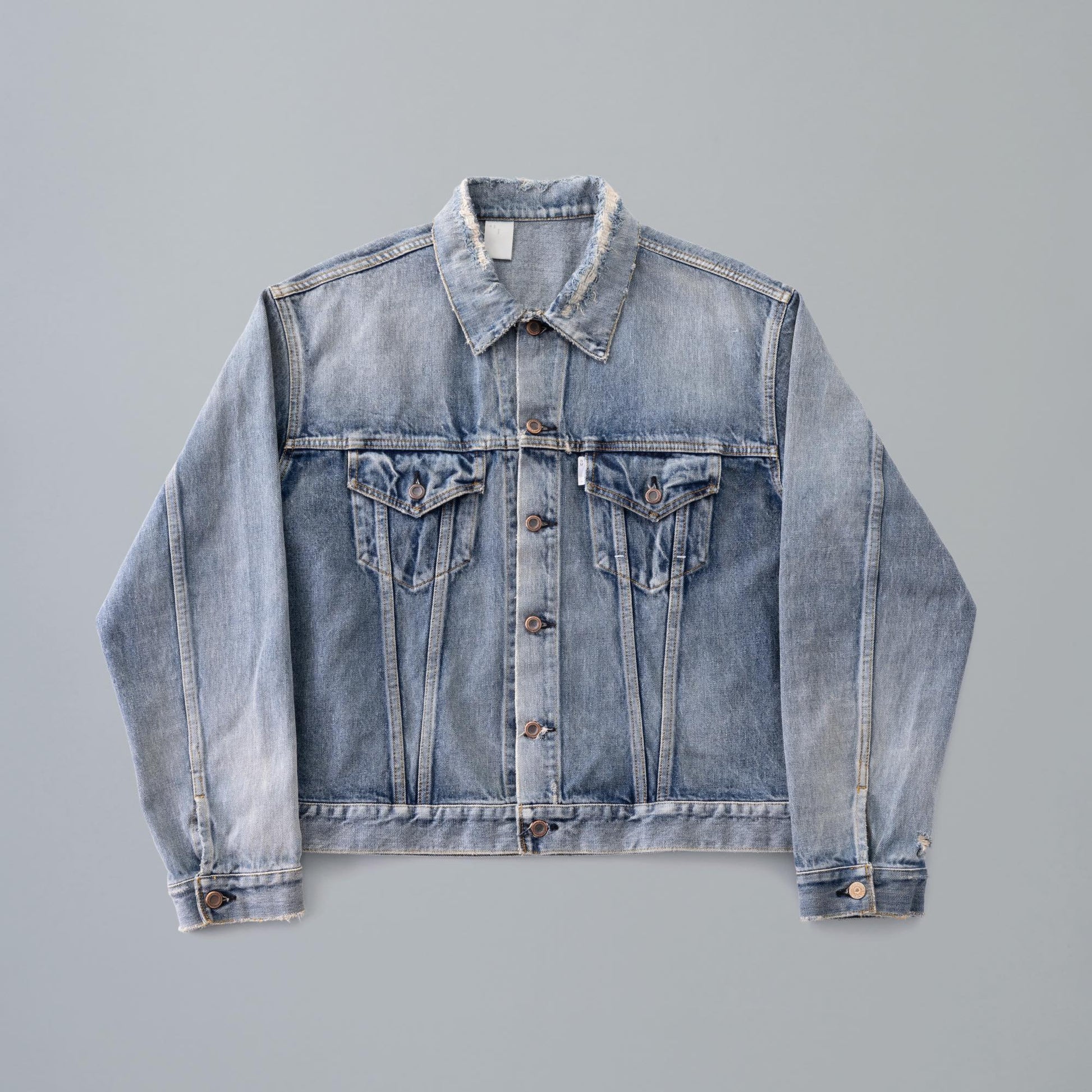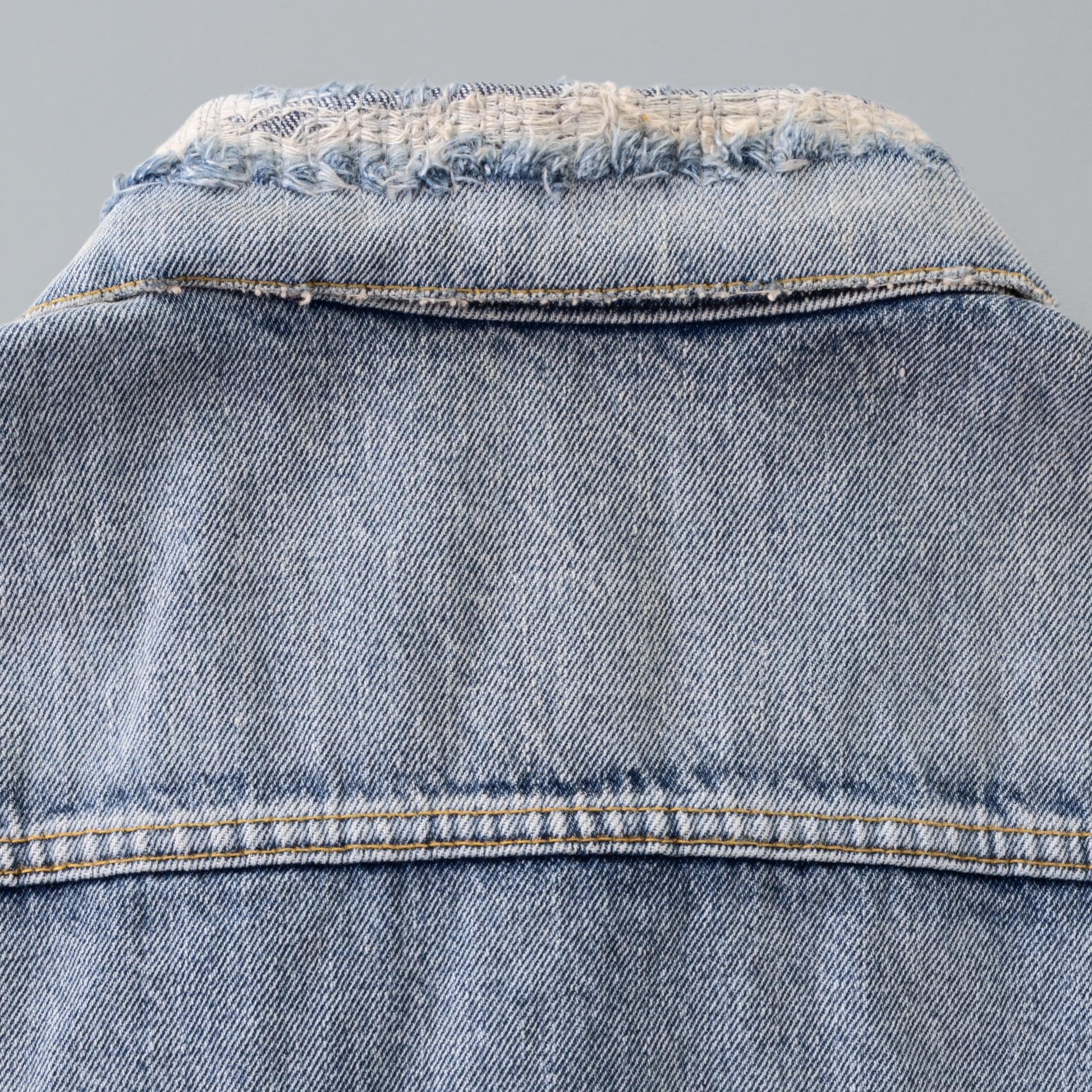 New Manual has now realized a collaboration with N.HOOLYWOOD designer Daisuke Obana. This N.HOOLYWOOD original is based on a denim outfit that Mr. Obana himself loved, and was constructed by combining countless patterns that caught his eye, from modern to vintage silhouettes. The sleeves are a little longer, adjusting the balance of the silhouette overall. To really recreate that vintage look, the material is 11.8 oz denim, a slightly thinner type that is a departure from the denim that New Manual normally uses. New Manual has also sought to recreate every little detail, including the aged and faded coloring, worn areas, aftermath of repairs, and running stitching. New Manual has now taken this product and reworked every single point from our own unique perspective. Aiming for a condition evocative of a longtime wearer having repaired the garment themselves, the collar in particular looks like roughshod 1970s home repairs have been performed on excessive crush damage in the area. We have forged nothing less than the physical epitome of the desire to continue to keep wearing one special piece of clothing—and that has now become a New Manual IRREGULAR.