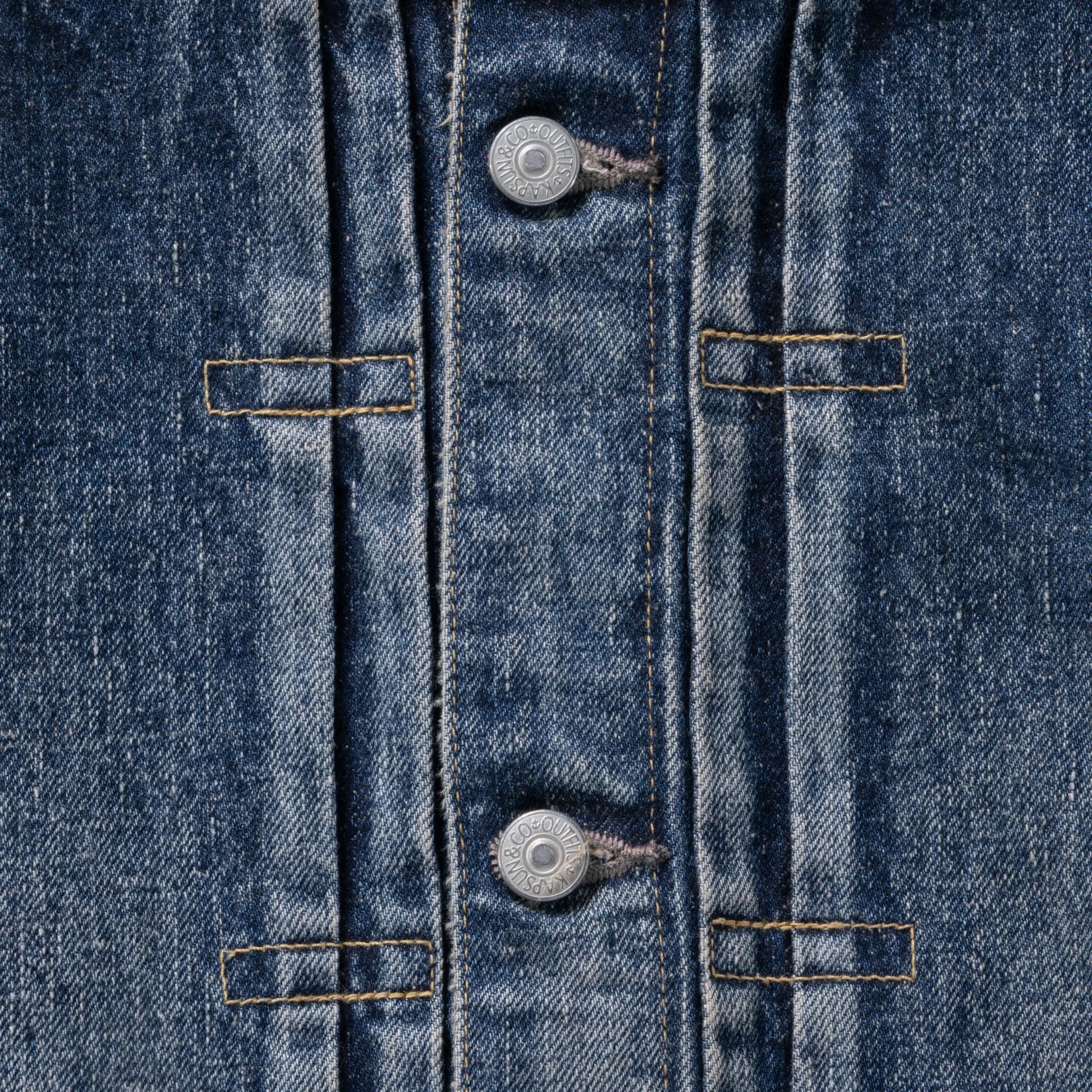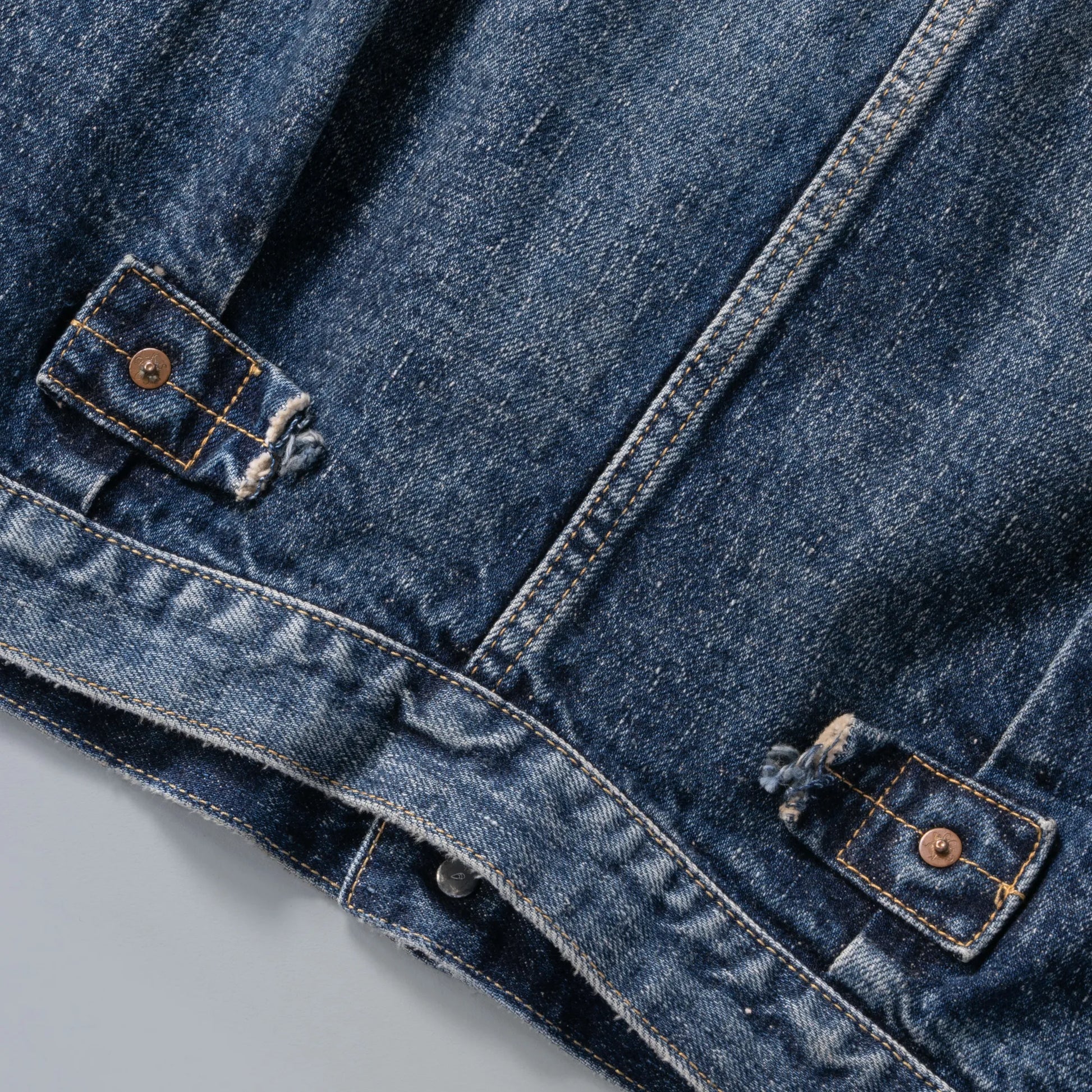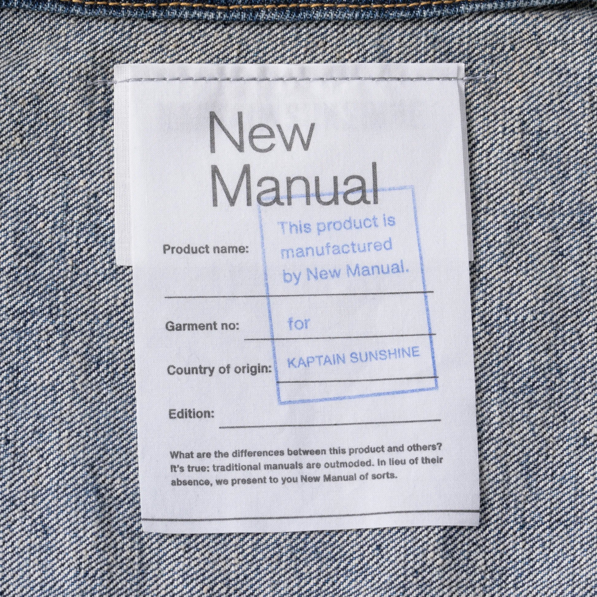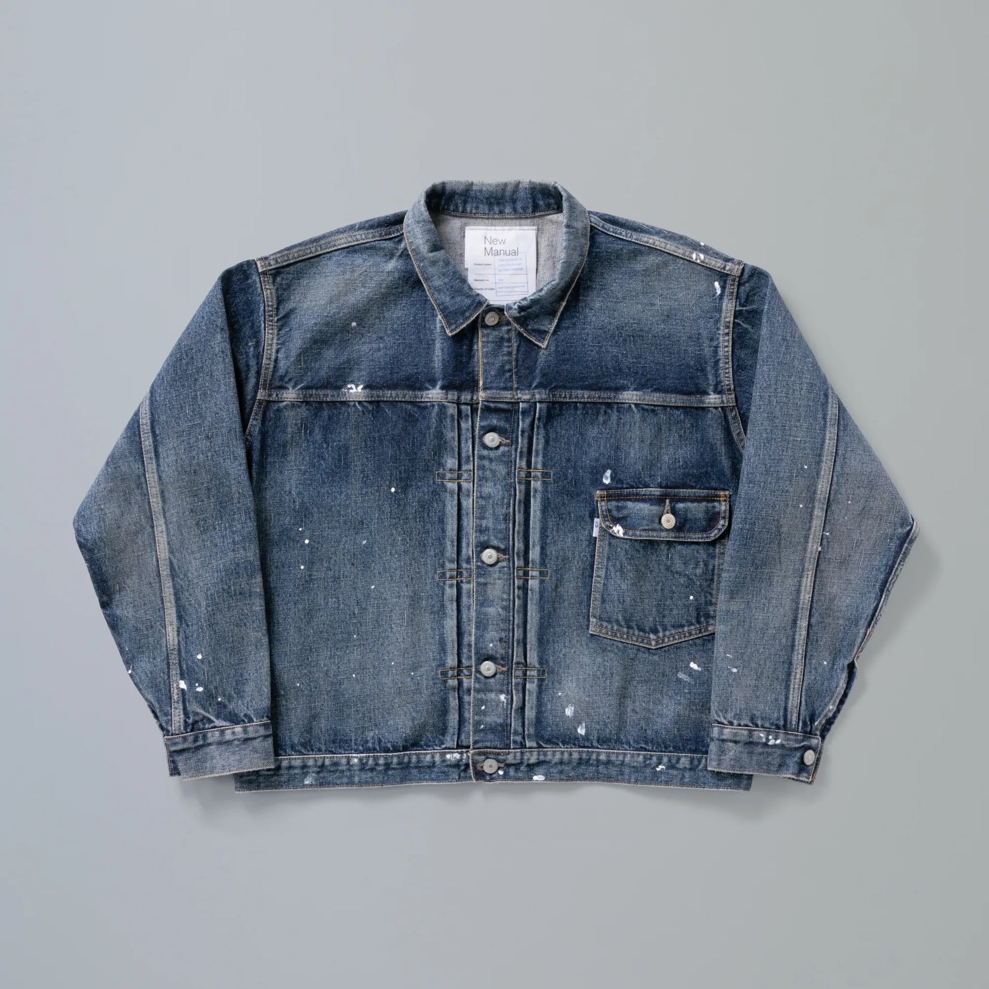 The base body is the T-BACK Denim Jacket from the collaboration project that was only sold at the Isetan Shinjuku POP UP STORE in April this year. It is based on the T-BACK Denim Jacket that KAPTAIN SUNSHINE designer Kojima purchased at BerBerJin. While keeping the same size and details, it is based on a vintage sample selected by Fujiwara, with new fade and paint processing added. Made from New Manual's original denim.