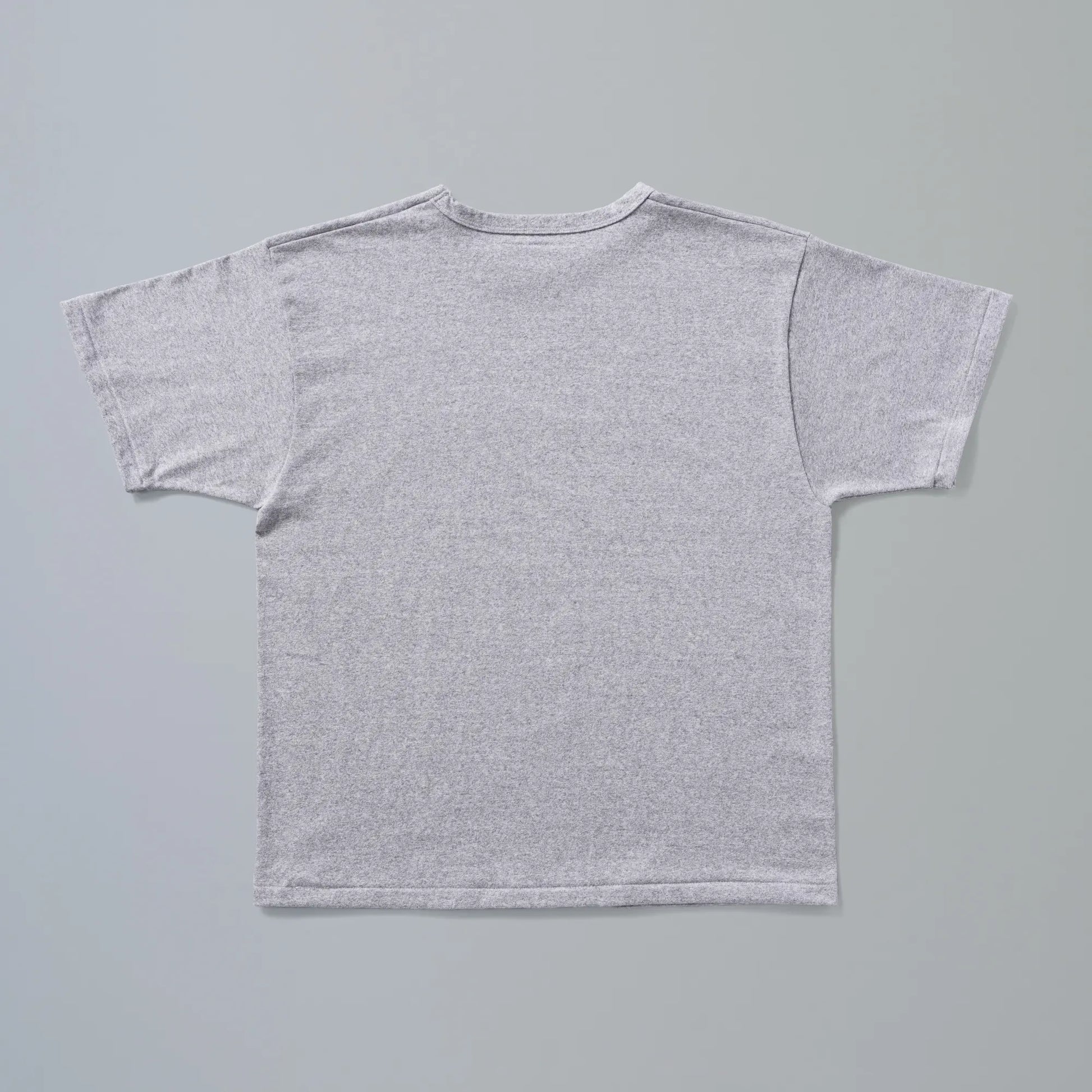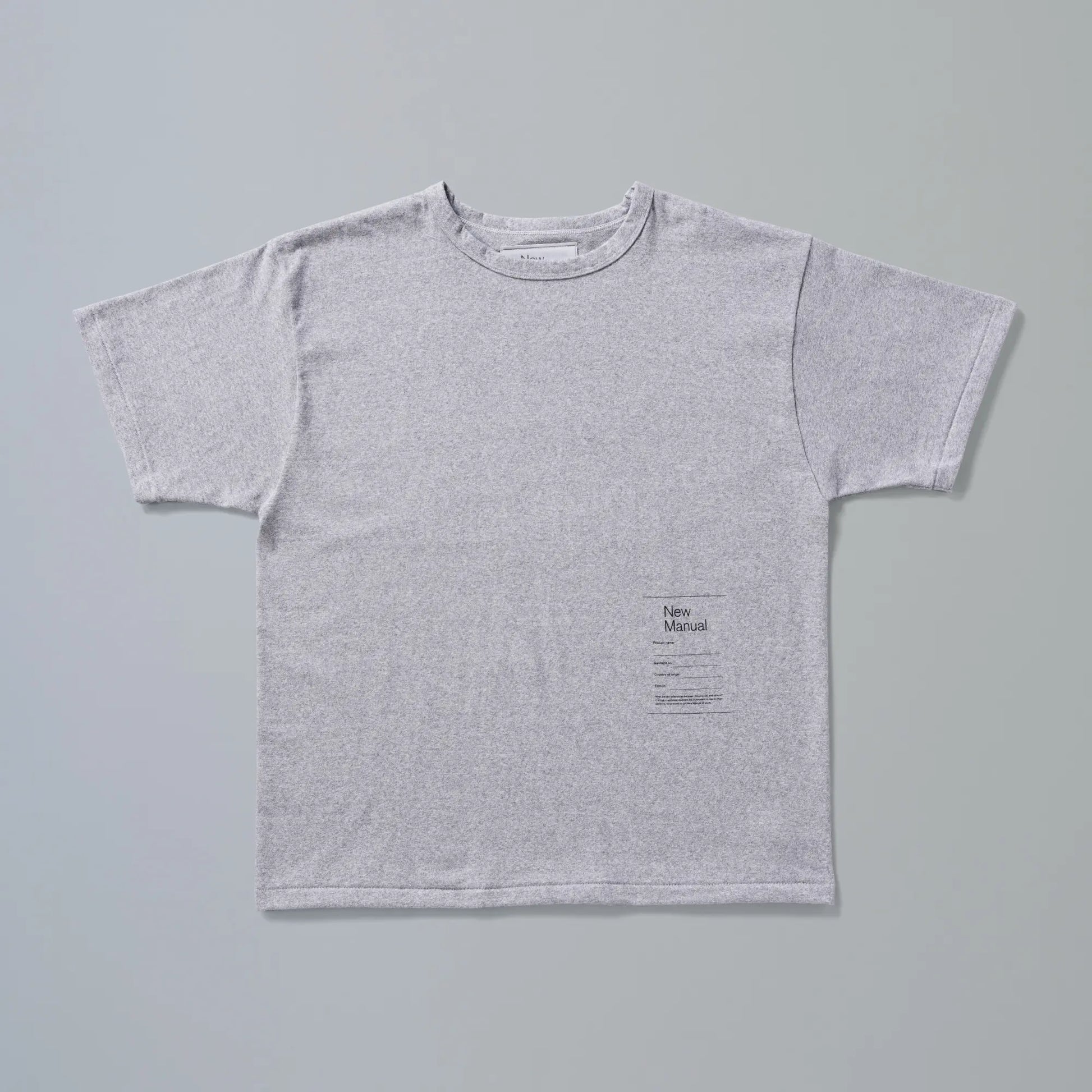The base body is a T-shirt from the collaboration project sold only at the Isetan Shinjuku POP UP STORE in April of this year, based on a T-shirt pattern from the 1970s and 1980s that KAPTAIN SUNSHINE designer Kojima purchased at Belvergine. The thick jersey knit with a slightly coarse look is an original knitted fabric created especially for this project. The neck is a binder neck. New Manual label print on the body. Available in bleached white and wooden gray.