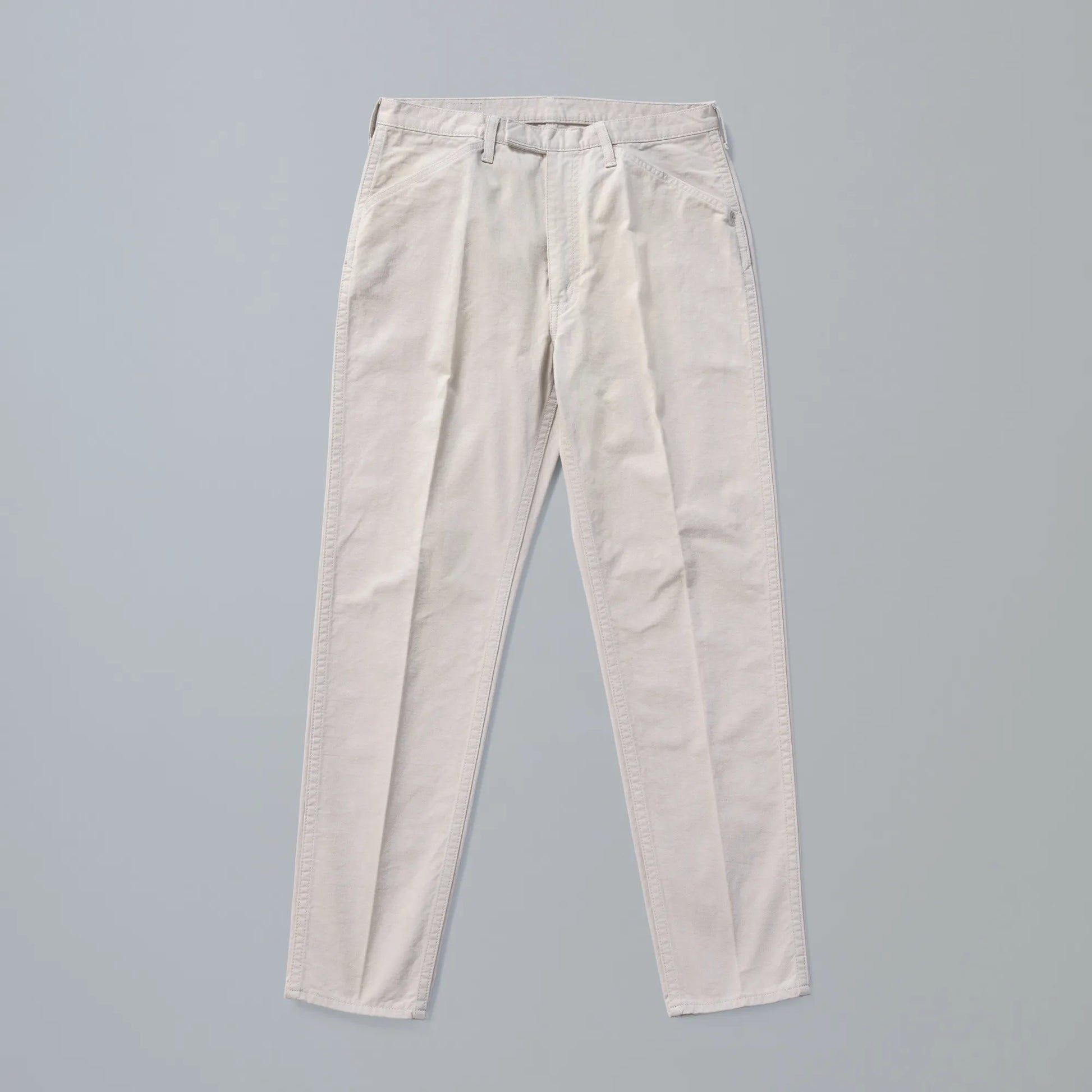 Based on tapered pants from the 1960s associated with Steve McQueen, this piece adds practical updates to the original design such as belt loops, which were absent from the vintage version, and an additional snap button for easier size adjustment. The beautiful silhouette of the original is retained, complete with a center crease.