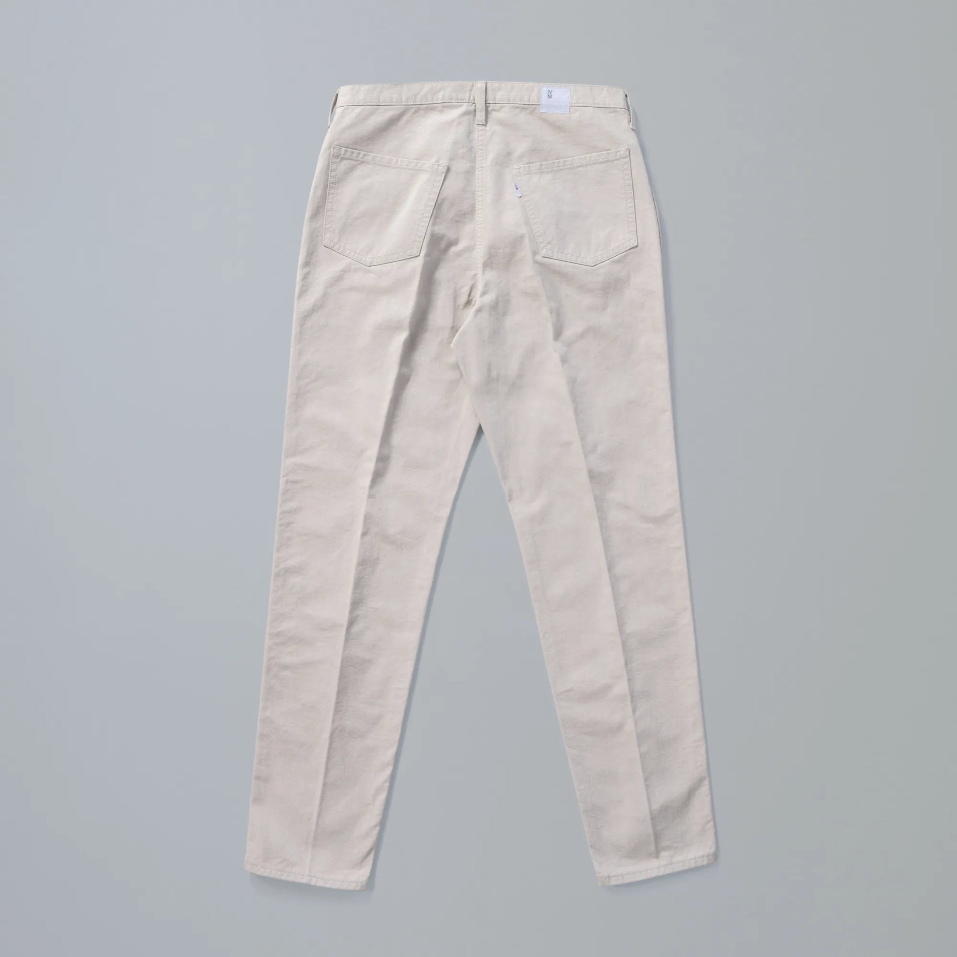 Based on tapered pants from the 1960s associated with Steve McQueen, this piece adds practical updates to the original design such as belt loops, which were absent from the vintage version, and an additional snap button for easier size adjustment. The beautiful silhouette of the original is retained, complete with a center crease.